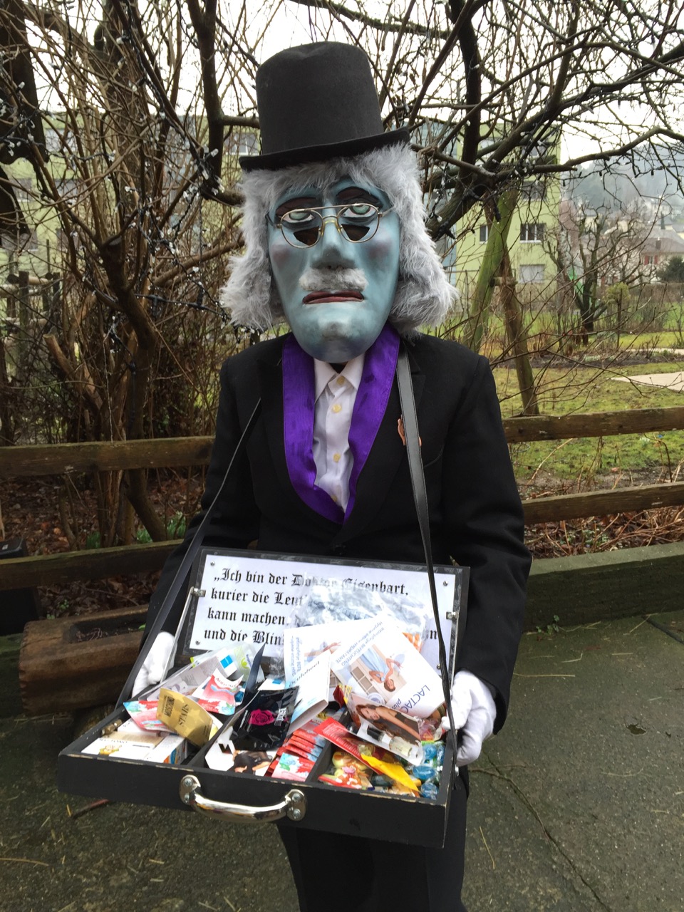 Er lebte tatsächlich und wurde 1663 in Oberviechtach geboren. Er zog von Stadt zu Stadt, um auf dem Markt in einem Zelt die Kranken zu heilen. Hie und da betitelte man ihn als Kurpfuscher. Es gibt Lieder, Theaterstücke und sogar Opern über sein Leben. Er erschien dann auch häufig in Fasnachtsproduktionen in Liestal und fand so den Weg nach Pratteln. Er bietet aus seiner Bauchapotheke seine zweifelhaften Wundermitteli an.