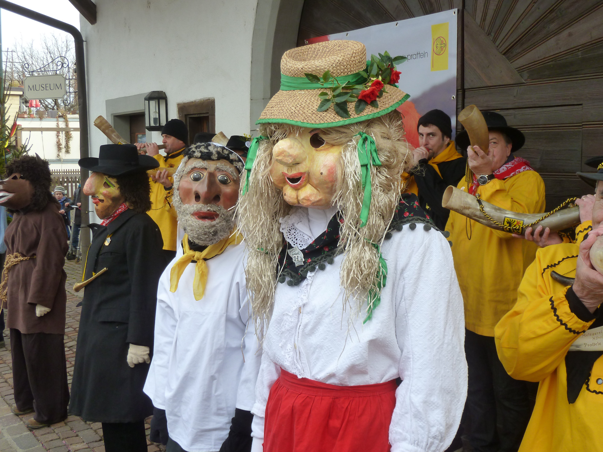 Was macht wohl der Tell in der Prattler Butz-Gesellschaft? Es gibt zwei einigermassen vernünftige Erklärungen. Eine Möglichkeit ist, dass ein besonders patriotischer Prattler fand, dass sich auch der Tell zum Heischezug gesellen sollte. Eine zweite findet sich in der Zeit, als Maskenumzüge verboten waren. Damals waren historisch-heroische Verkleidungen noch erlaubt. Der Tell könnte somit ein Überbleibsel aus dieser Zeit sein.