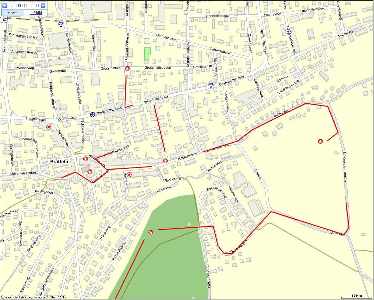 Rückweg ins Dorfzentrum von Pratteln. Von da erreichen Sie über die Mayenfelserstrasse in ca. 20 Min. wieder das Dorfzentrum.