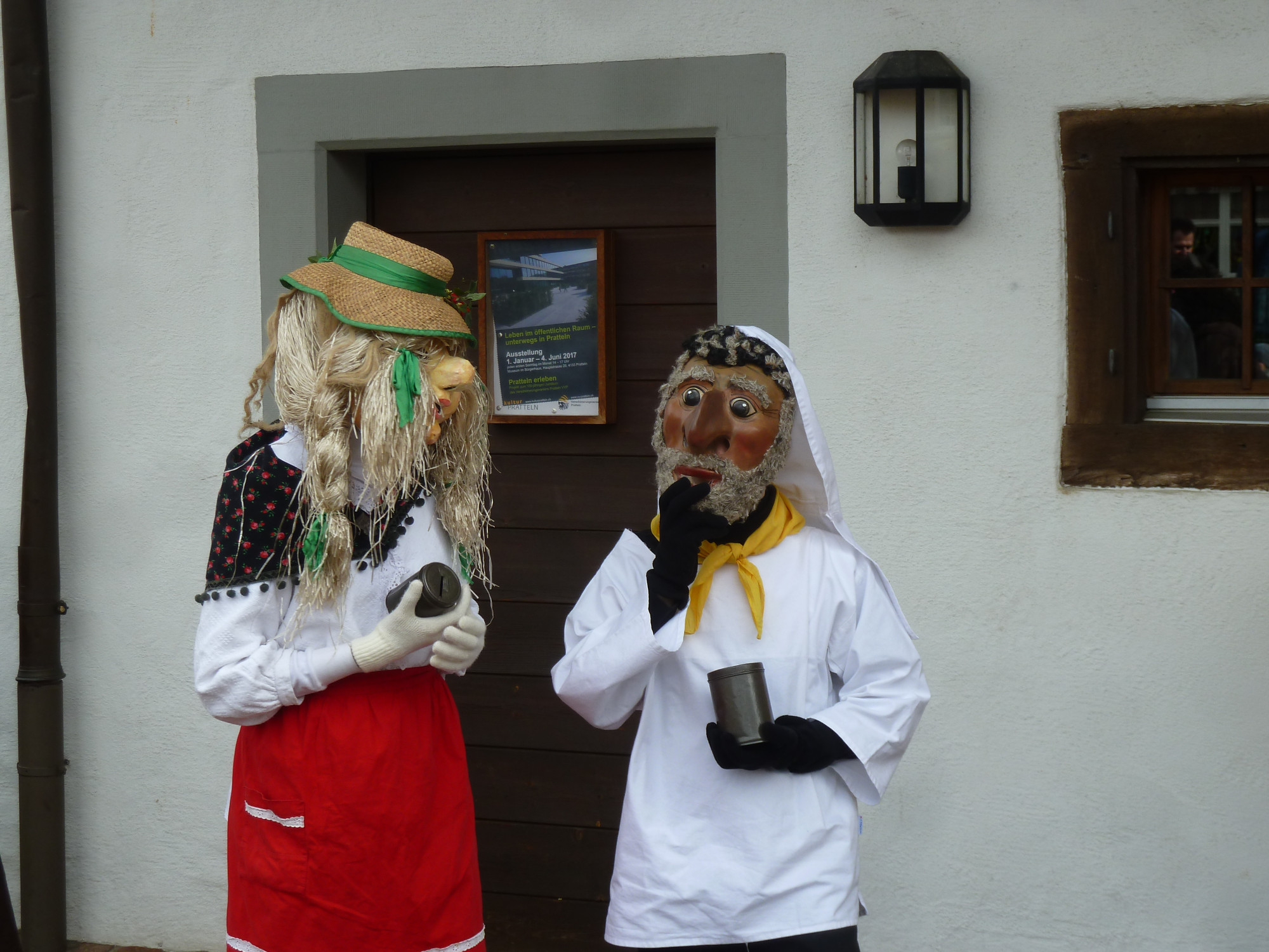 Was macht wohl der Tell in der Prattler Butz-Gesellschaft? Es gibt zwei einigermassen vernünftige Erklärungen. Eine Möglichkeit ist, dass ein besonders patriotischer Prattler fand, dass sich auch der Tell zum Heischezug gesellen sollte. Eine zweite findet sich in der Zeit, als Maskenumzüge verboten waren. Damals waren historisch-heroische Verkleidungen noch erlaubt. Der Tell könnte somit ein Überbleibsel aus dieser Zeit sein.